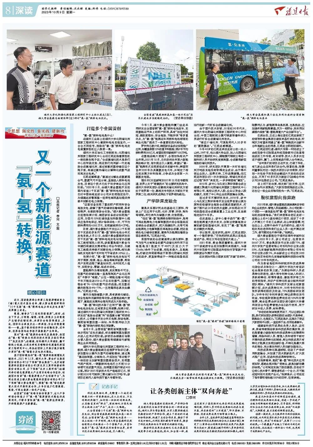 “氨-氢”转化技术除了应用于“氨-氢”燃料电池发电站,还有更多应用前景。张卿介绍,通过福州大学化肥催化剂国家工程研究中心研发的“高效合成氨”和“低温氨分解”两项核心技术,公司着手开发分布式电源、移动电源、氨现场制氢加氢一体站、车用/船用动力及“氨-氢”燃烧内燃机等应用场景。